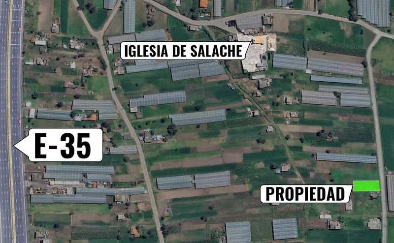 Terreno de 525m² en excelente ubicación de Salache. Cerca de la vía E-35 y la iglesia de Salache. Con servicios básicos disponibles y agua de regadío. Escrituras inmediatas. Alta plusvalía.